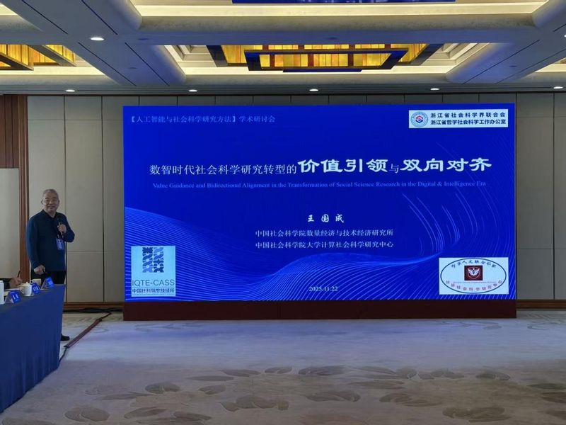 2025年11月22日,由《浙江社会科学》杂志社、杭州电子科技大学数据科学与智能决策实验中心、杭州电子科技大学浙江省信息化发展研究院联合主办的“人工智能与社会科学研究方法”学术研讨会在杭州成功举办。会议深入贯彻落实党的二十届四中全会精神、浙江省委十五届八次全会精神以及浙江省社会科学界联合会第九次代表大会精神,聚焦探讨人工智能与社会科学研究方法深度交叉融合的前沿领域,设置了4场主旨报告、1场圆桌论坛和3场分论坛,来自中国社会科学院、清华大学、浙江大学、南京大学、南开大学等院校的50余名专家学者参加会议。