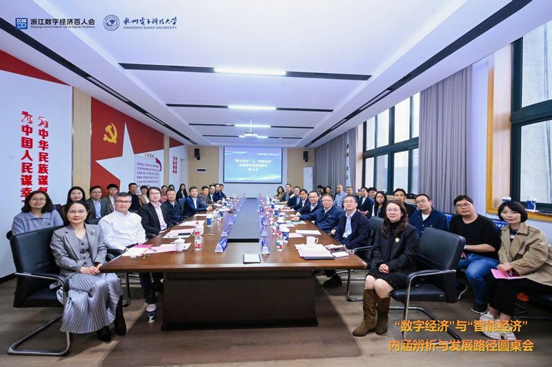 为深入贯彻落实国家“打造智能经济新形态”的战略部署,深入辨析“数字经济”与“智能经济”的内涵与关系,前瞻思考智能经济时代的发展路径,4月11日下午,由浙江数字经济百人会、杭州电子科技大学联合主办,杭州电子科技大学浙江省信息化发展研究院、浙江省图灵互联网研究院、浙江省人工智能学院、杭州电子科技大学数据科学与智能决策实验中心协办的“数字经济”与“智能经济”内涵辨析及发展路径圆桌会在杭州电子科技大学文一校区成功召开。